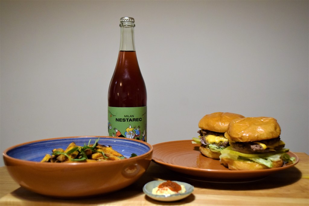 “From what I’ve heard it’s a very drinkable, everyday wine. It’s a Czech wine, and it’s supposed to be very easy to pair with anything. Kind of like a table wine for everyone to enjoy. So that’s why I think it will go great with burgers.”